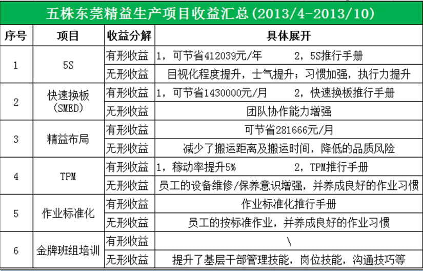 4、實施管理工具:包括5S與目視化管理、快速換板、精益布局(減少搬運浪費)、TPM(設備保養、維護、稼動率提升);