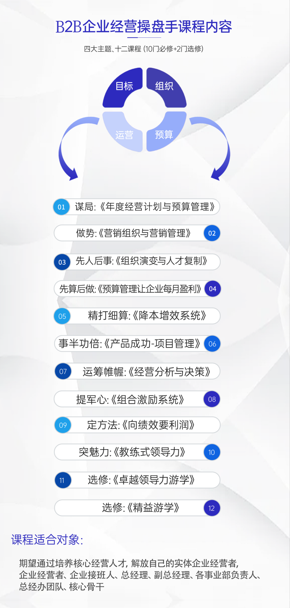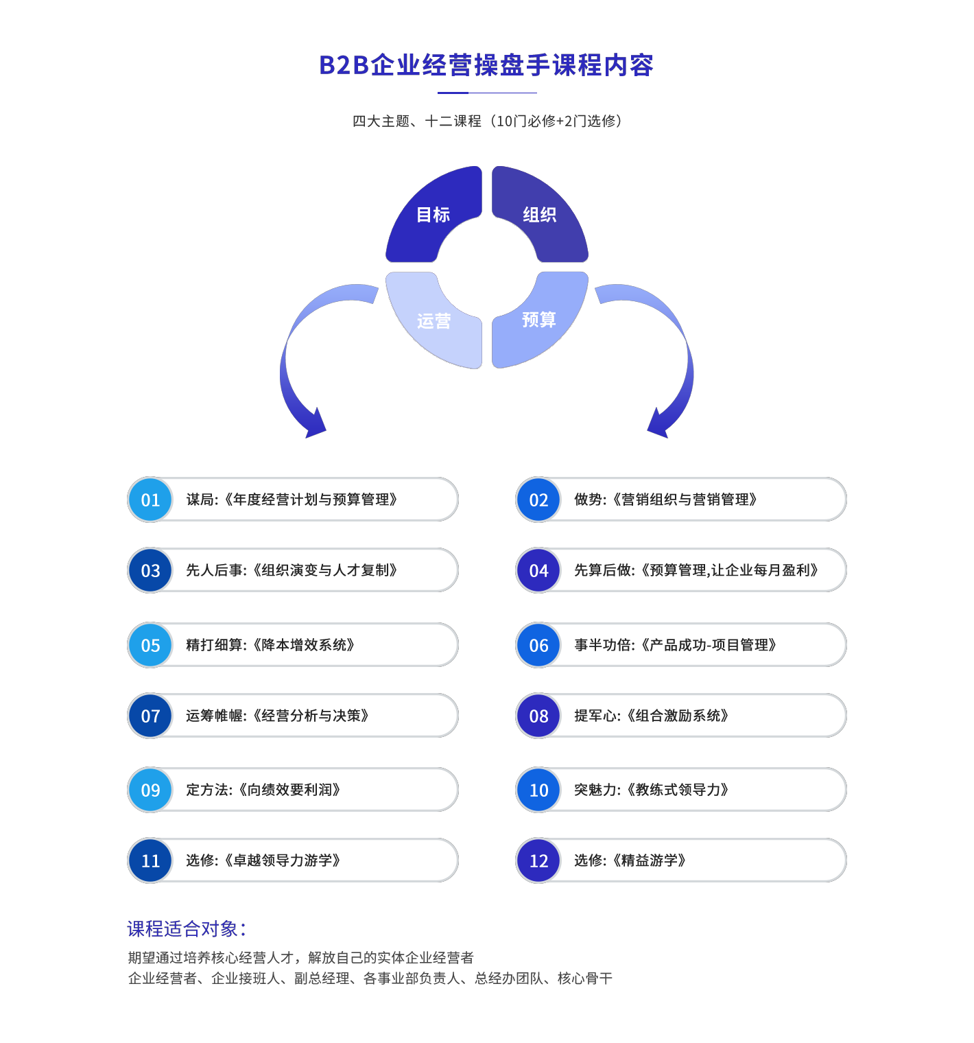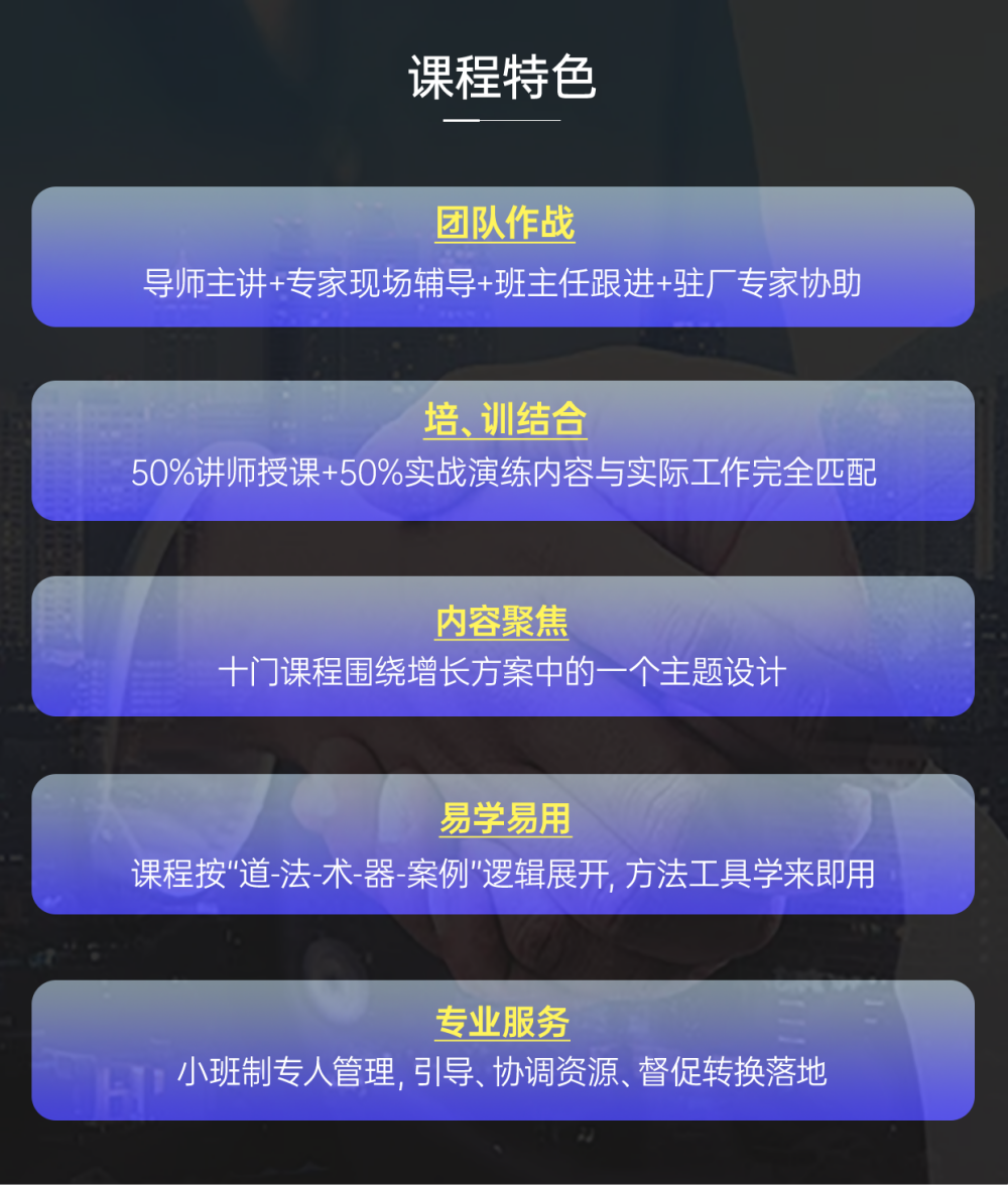用系統(tǒng)、實(shí)效、落地的課程,把核心管理人員培養(yǎng)為能打勝仗的經(jīng)營者