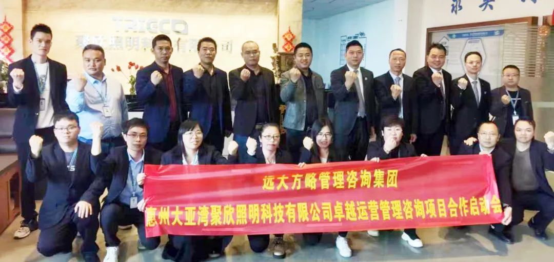 惠州大亞灣聚欣照明科技有限公司(以下簡稱“聚欣照明”)攜手遠大方略開啟《卓越運營管理》咨詢項目,加強組織建設,優化運營管理體系,提升內部管理能力,助推企業持續健康發展。