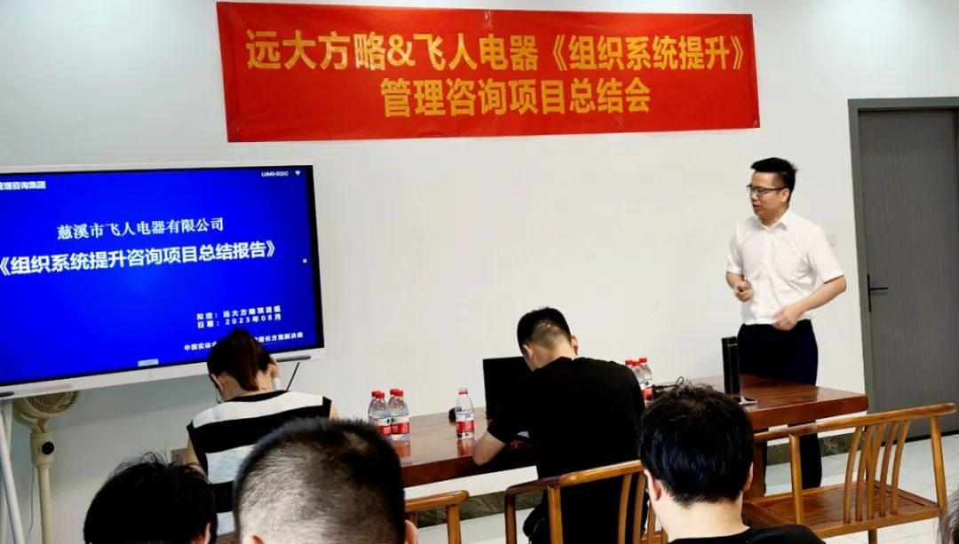 慈溪市飛人電器有限公司(以下簡稱“飛人電器”)攜手遠大方略《組織系統(tǒng)提升》咨詢項目圓滿結束。梳理公司戰(zhàn)略目標,明確組織架構職責,增強各部門協(xié)同,提升運營管理效率,助推企業(yè)高速高質量發(fā)展。
