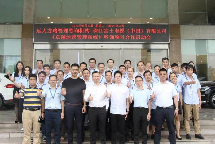2019年7月,珠江富士電梯(中國)有限公司(以下簡稱“珠江富士電梯”)攜手遠大方略管理咨詢公司啟動《集成運營管理系統》改善項目。遠大方略項目總監姚老師、項目咨詢師馮老師、羅老師入駐珠江富士電梯,通過對珠江富士電梯公司的深入調研與探討,本期項目主要圍繞戰略規劃與經營計劃、組織架構優化與責權利系統構建、營銷管理模式打造、核心業務流程梳理、目標與數據信息體系構建、自主運營體系構建等展開改善。