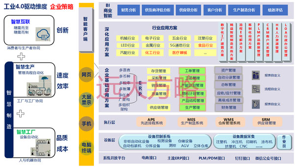遠大方略科技智能制造事業部,具有制造業自主知識產權的國產自主軟件:ERP、MES、WMS、APS,并能與各主流ERP系統集成,打通企業內部信息系統,并能與外部系統進行集成(CRM、SRM)