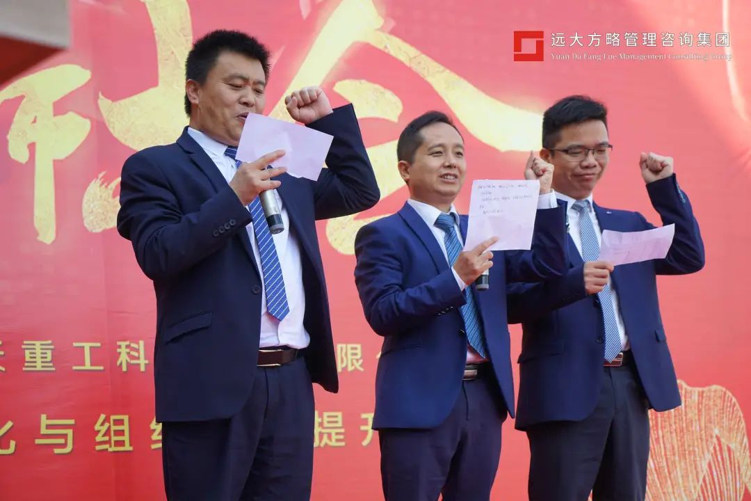 任正非說,產(chǎn)品發(fā)展的路標(biāo)是客戶需求導(dǎo)向,企業(yè)管理的目標(biāo)是流程型組織建設(shè)。此次變革就是增強組織能力,提高企業(yè)的管理水平和競爭力,支撐公司戰(zhàn)略目標(biāo)的實現(xiàn)。針對變革,老師有方法和工具,但是需要大家一起攜手將方案有效落地,推動此次變革的順利進(jìn)行。會上遠(yuǎn)大方略項目組老師也上臺進(jìn)行了宣誓,必將全力以赴做好此次海天重工的項目改善,助力企業(yè)更成功。