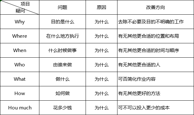 為了分析時(shí)能夠收集到更多的意見,且不會(huì)有任何的遺漏,可以設(shè)置以下提問項(xiàng)目逐項(xiàng)進(jìn)行提問,并進(jìn)行客觀的解答。如表所示: