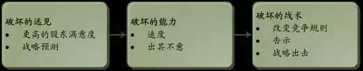 (5)改變競爭規(guī)則(Shifting the rules against the Competition):改變競爭規(guī)則可以打破產(chǎn)業(yè)中既有的觀念和標(biāo)準(zhǔn)模式。亦步亦趨,是被動(dòng)應(yīng)戰(zhàn),常常取不到好的效果。
