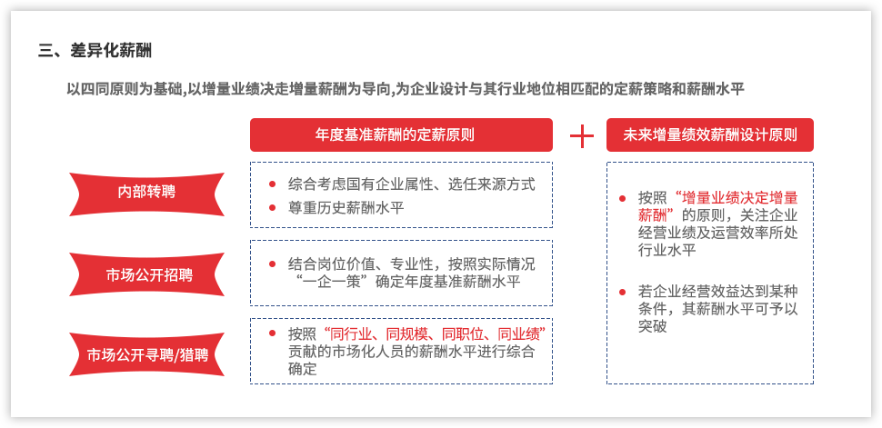 職業(yè)經(jīng)理人改革的核心目的是自上而下地為企業(yè)建立市場化的經(jīng)營機制和激勵約束機制,推動國有企業(yè)市場主體地位的落實,增強、釋放企業(yè)發(fā)展活力和潛力。遠大方略認為,職業(yè)經(jīng)理人改革是一個體系工程,其實施需要以公司治理結(jié)構(gòu)完善為先決條件,以人才發(fā)展體制機制改革為制度基礎(chǔ),以契約化管理和有效的考核、激勵、約束機制作為保障,涵蓋戰(zhàn)略引導(dǎo)、治理機制、崗位價值、薪酬策略、激勵前設(shè)、契約管理等多個方面。