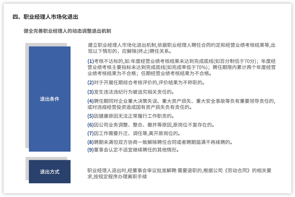 目前從中央到地方各層級政府均出臺了相關(guān)支持政策,部分重點企業(yè)也開展了相關(guān)試點改革,但在實際操作中卻普遍出現(xiàn)了職業(yè)經(jīng)理人“水土不服”、權(quán)責不清、目標不明、激勵不足等問題,制約了職業(yè)經(jīng)理人改革效果的發(fā)揮。