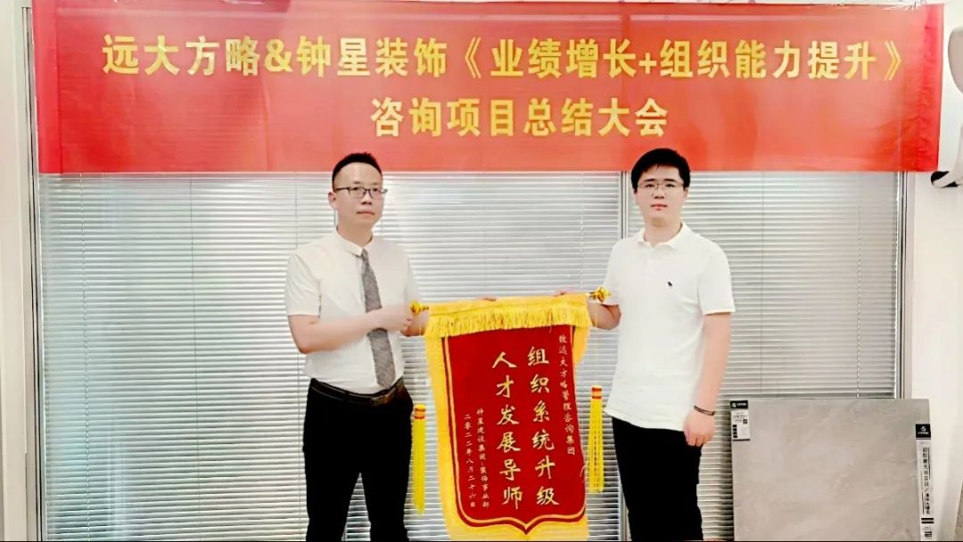 經過半年的努力,江蘇鐘星建設集團-裝飾事業部(以下簡稱“ 鐘星建設”)攜手遠大方略《支撐業績增量的組織建設》咨詢項目圓滿結束,順利進入成果驗收階段。在公司全體員工和老師的積極配合與辛苦付出下,成功為公司打造了一個支撐業績增長的組織團隊,推動企業持續增長。