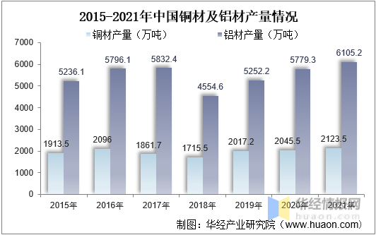 電線電纜主要由導體線芯、絕緣層和護層等部分構成,其中導體線芯主要由銅材、鋁材構成,銅、鋁原材料在電線電纜產品所需的原材料中占比最大。我國是世界上第二大產銅國和第一大原鋁生產國,市場供應充足。據資料顯示,2021年我國銅材產量為2123.5萬噸,同比增長3.8%;鋁材產量為6105.2萬噸,同比增長5.6%。