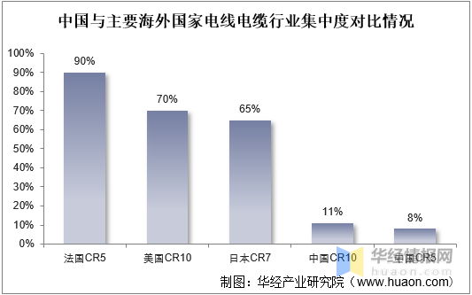 雖然國內電線電纜行業已形成成熟的產業鏈和完整的工業體系,但大部分企業生產出的產品同質化嚴重,多以中低端常規線纜產品為主,且選用技術趨同,行業內企業競爭激烈,行業集中度相對較低。隨著我國電線電纜行業結構調整的持續深入,電線電纜企業之間洗牌整合步伐加快,未來我國電線電纜行業集中度將逐步提升。