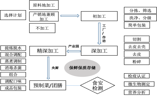 食材加工環節主要包含產地預冷、檢驗檢疫、分揀作業、加工處理、包裝、質量管理及存儲(以上環節不含產地端生產/采摘等)。