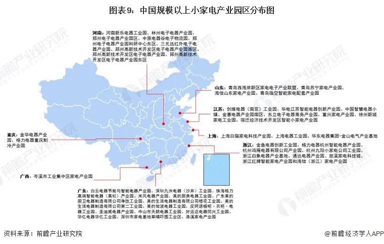 1、小家電產業園區集中分布在廣東、浙江