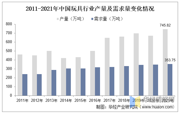 2011-2021年中國玩具行業(yè)產(chǎn)量及需求量變化情況