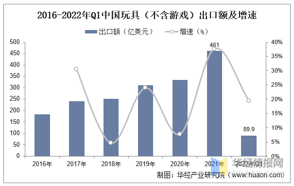 2016-2022年Q1中國玩具(不含游戲)