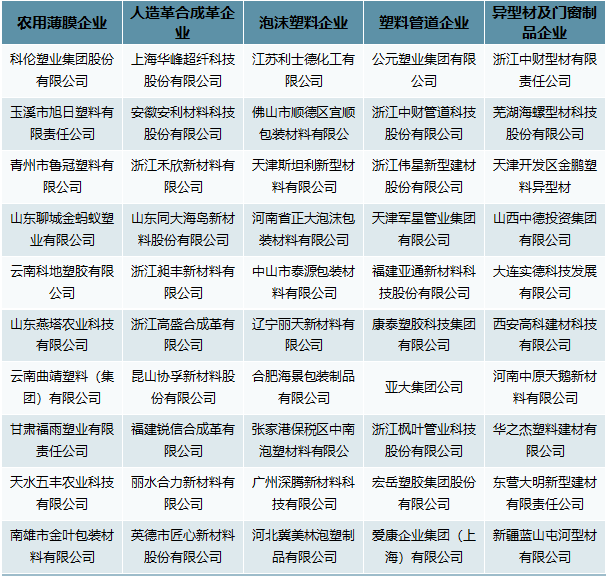 國內塑料制品產品門類眾多,從細分市場來看,2021年我國塑料薄膜產量1608.71萬噸,占比20.1%;日用塑料產量701.53萬噸,占比8.76%;人造合成革產量320.16萬噸,占比4%;泡沫塑料產量260.09萬噸,占比3.25%;其它塑料產量5113.49萬噸,占63.89%。