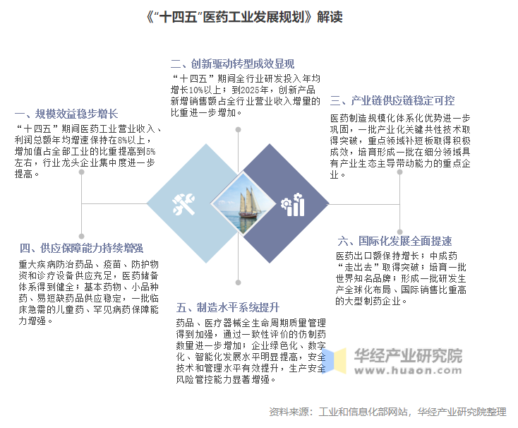 面對國內外新形勢發展,為推動我國醫藥工業向創新驅動轉型,促進我國醫藥工業高質量發展,依據《中華人民共和國國民經濟和社會發展第十四個五年規劃和2035年遠景目標綱要》,2022年1月30日,工業和信息化部等九部門聯合編制了《“十四五”醫藥工業發展規劃》。