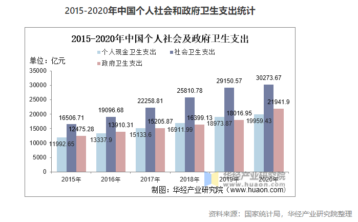 近年來,我國醫療資源不斷豐富,醫療技術水平不斷提升,衛生支出總體呈上升趨勢,2020年全國衛生總費用預計達72306.4億元,占GDP百分比為7.12%,個人衛生支出為2萬億元左右。社會衛生支出大概3萬億元,政府衛生支出2.2萬億元。衛生支出費用持續增長,醫藥制造行業需求市場發展空間廣闊。