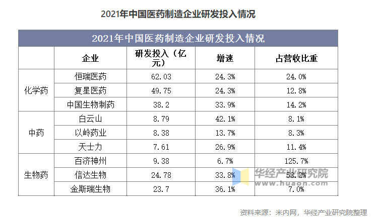 隨著藥品審評審批制度改革、國家醫保常態化調整等政策改革,“創新”逐漸成為藥企的發展理念?;瘜W制藥行業正在發生結構性變化,隨著仿制藥出現藥品價格持續下降的同時,行業集中度也有望提升;中醫藥行業政策利好不斷,相關部門從市場準入、醫保支付、審評審批等多個維度對中醫藥行業形成政策支撐,中藥原材料價格上漲對企業決策也造成一定的影響;生物藥雖然起步晚于化學藥,但近年來卻受全球藥企熱捧,成為藥企和投資者競爭的新方向,研發投入力度較大。