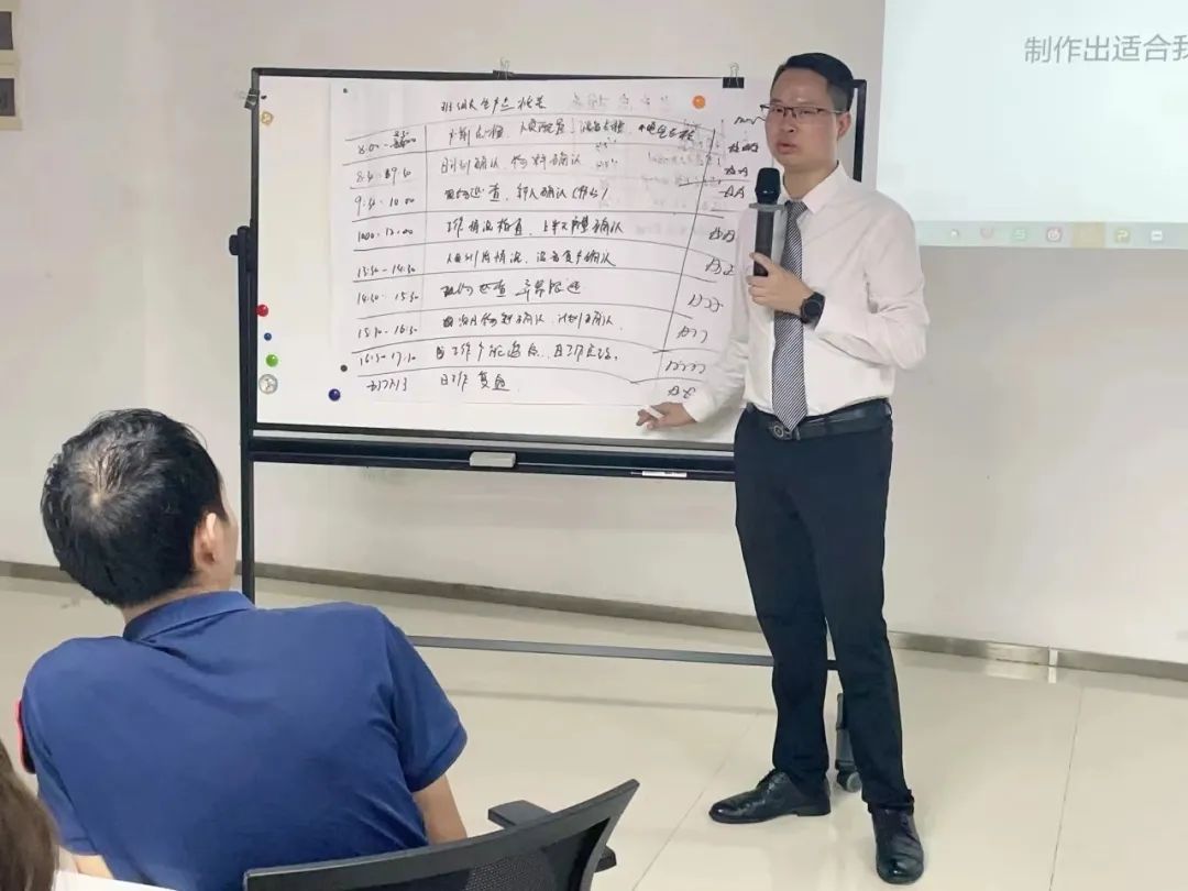 課堂上老師不僅講解了理論,而且結合實戰案例,形象生動、通俗易懂,課后老師針對企業的實際情況,布置了課程實踐與落地作業,給出金牌班組之高效高質量早會評分細則。