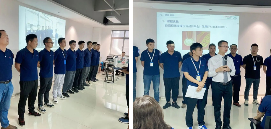 本次項目制系列課主要包括《金牌班組之標準作業》《金牌班組之動作經濟原則》《金牌班組之高效高質量早會》等十多節課程,為確保培訓內容的有效落地,此次培訓采用半天培訓+半天輔導的形式,全面提升一線班組長能力,打造金牌班組長。培訓開始之前首先進行了開營儀式,營造濃厚學習氛圍,明確學習目標。