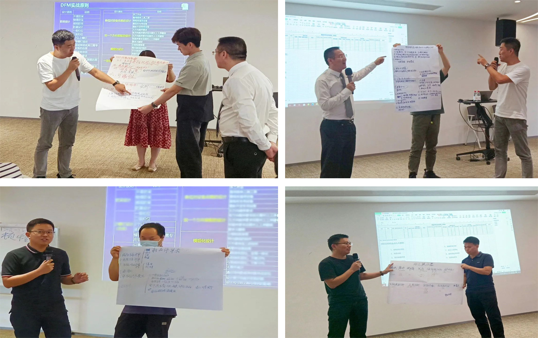 課程還運用企業落地實踐案例,講解了產品設計8原則、零部件設計6原則、設計效率和品質提升要點、爆款降本作戰流程、項目實施-CDOC/31518原則等,幫助學員在設計中顛覆傳統思維,圍繞市場、制造痛點、經營改善等,從工藝突破、可制造性、標準化等維度拉通全價值鏈形成沉淀,實現從源頭開始的改善提升。