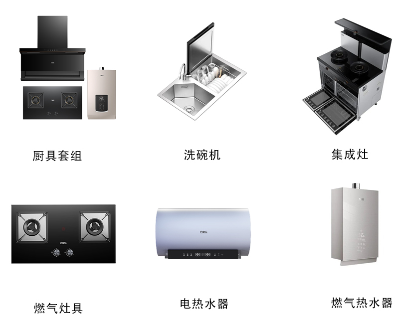 公司產品覆蓋熱水、廚電、凈水、采暖四大品類。包括熱水器、油煙機、燃氣灶、洗碗機、集成灶、凈水器、壁掛爐等。