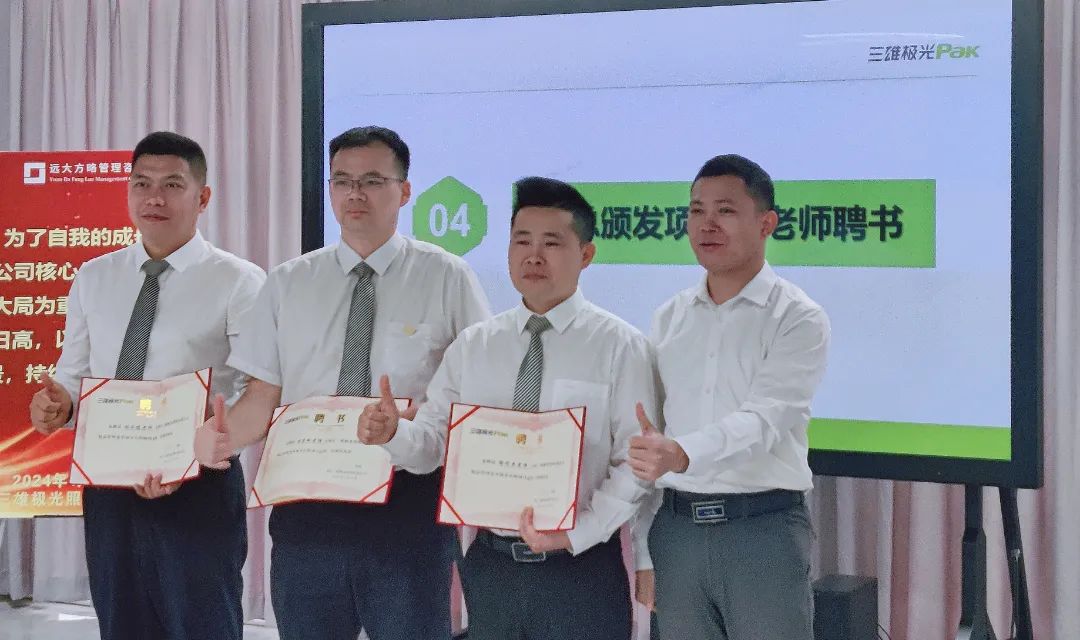隨后,唐總為遠大方略項目組老師頒發聘書,聘請項目組老師為此次項目改善的指導老師,全面推動此次項目開展。