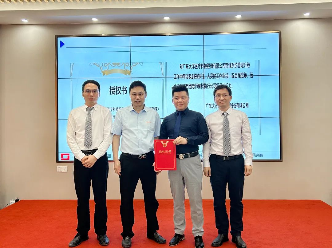 此外,黃董還為項目推動委員會的成員頒發了聘書,進一步加強了項目組與公司各部門之間的溝通與合作。這一系列授權和任命不僅為項目的順利推進提供了保障,也激勵了項目組成員以更高的熱情和專業性,助力大洋醫療在醫療器械行業的競爭中取得新的優勢。