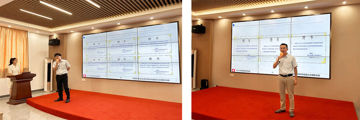 黃董事長宣布了一系列有力措施,以支持集團《營銷管理系統》咨詢項目的順利推進。并向遠大方略項目組頒發了《授權書》,這一舉措不僅彰顯了大洋集團對咨詢項目的高度重視,也體現了集團開放接受專業指導的決心。