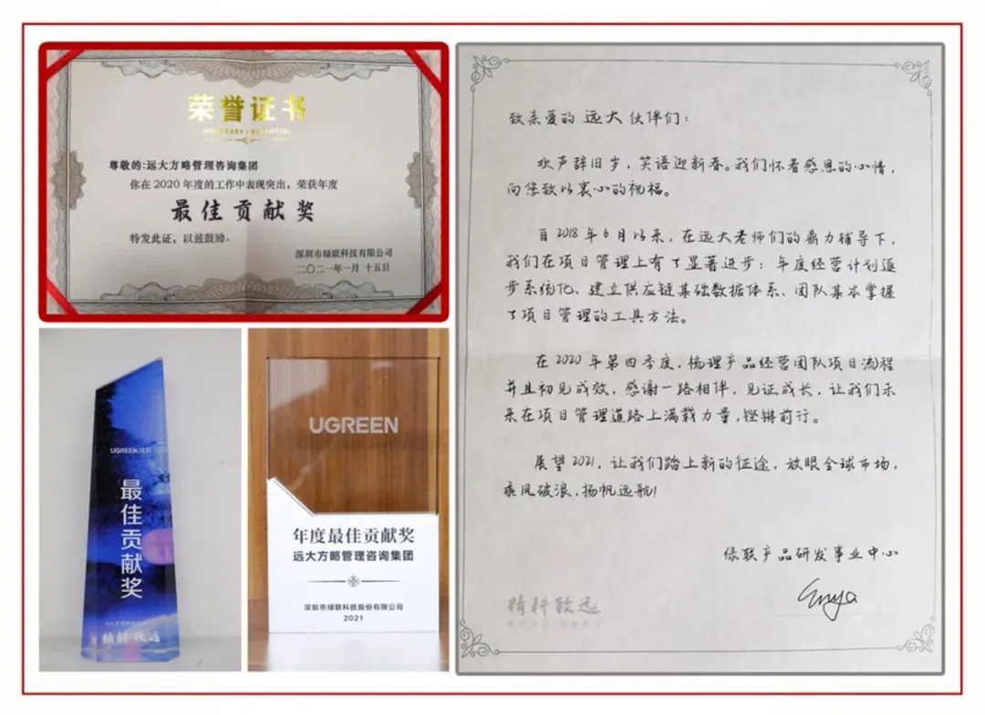 2018年,綠聯(lián)科技正處于高速發(fā)展期,為進(jìn)一步深化基礎(chǔ)管理,夯實(shí)企業(yè)發(fā)展內(nèi)功,綠聯(lián)科技引進(jìn)咨詢公司,因此與遠(yuǎn)大方略結(jié)緣,至此達(dá)成長期戰(zhàn)略合作。2018年至今,綠聯(lián)科技與遠(yuǎn)大方略連續(xù)合作6年,先后合作10期咨詢項(xiàng)目。