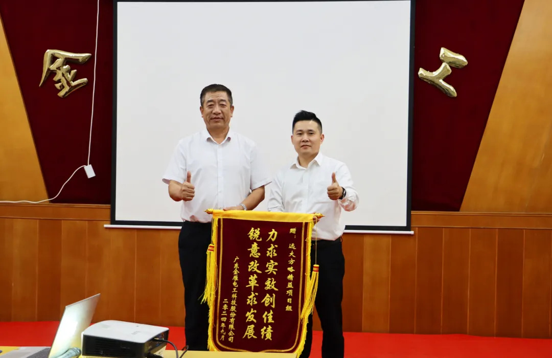 同時,會議為精益生產管理過程中的優秀員工和團隊進行了表彰,為遠大方略項目組、指導老師和項目優秀小組頒發了錦旗。同時,還邀請了優秀員工代表分別上臺發表感言,分享其在參與精益生產管理項目過程中思想上的改變