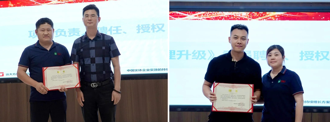 會上,潘總和李總對遠大方略項目組進行了聘用授權,為項目小組關鍵人員頒發了聘書,并簽訂誓言集體宣誓,鼓勵大家全力以赴投身變革,共同創造更具競爭力的企業。