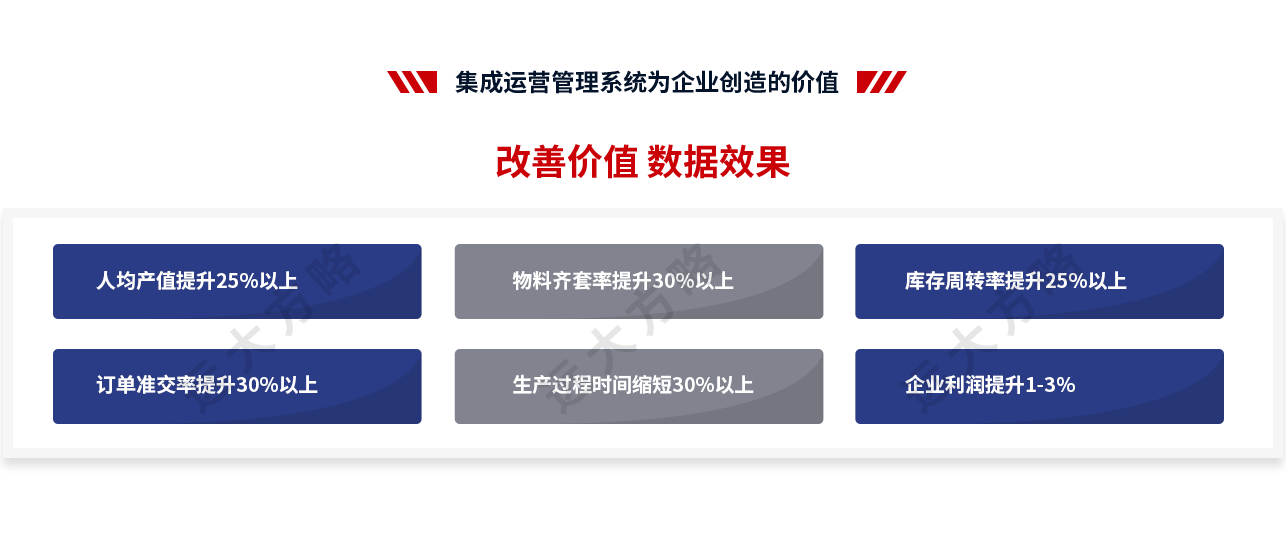 3、數據增長:交付周期縮短45.1%;人均產值提升37% ;訂單準交率提升43%;庫存周轉提升至45%;構建了經營管理中心,實現經營重點組織管控,構建了企業的數據體系和信息流,數據驅動效率提升。